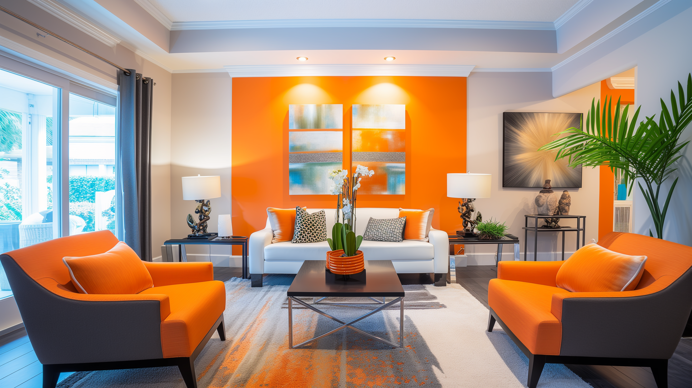 A burst of color on the walls can make your space feel lively and vibrant. Consider colors like deep yellows or oranges that can complement wooden furniture. An accent wall in a bold color can become the focal point of your room, creating a dramatic and stylish effect.