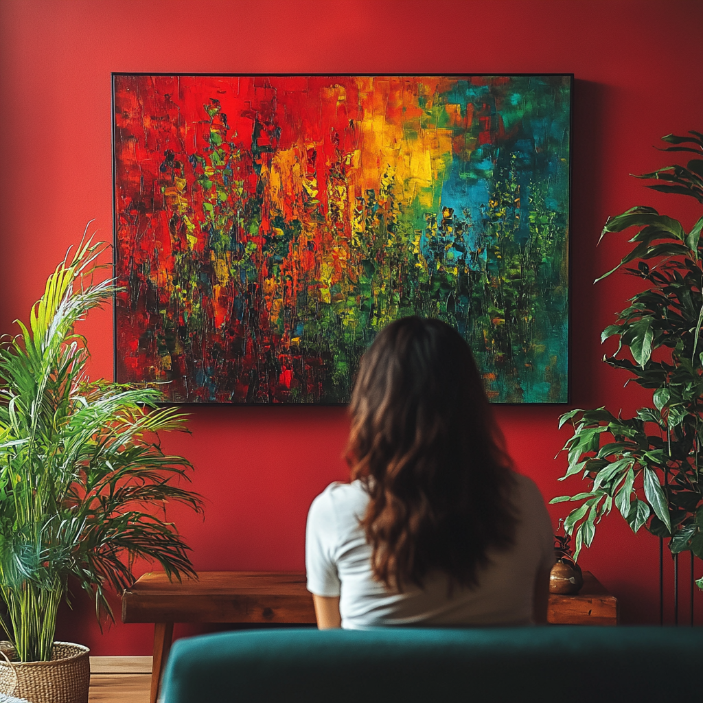 A single piece of colorful wall art can be enough to energize a room. Choose a painting that features bright hues and place it in a central position to draw the eye and create a lively atmosphere. It’s a simple yet effective way to introduce color into a neutral room.