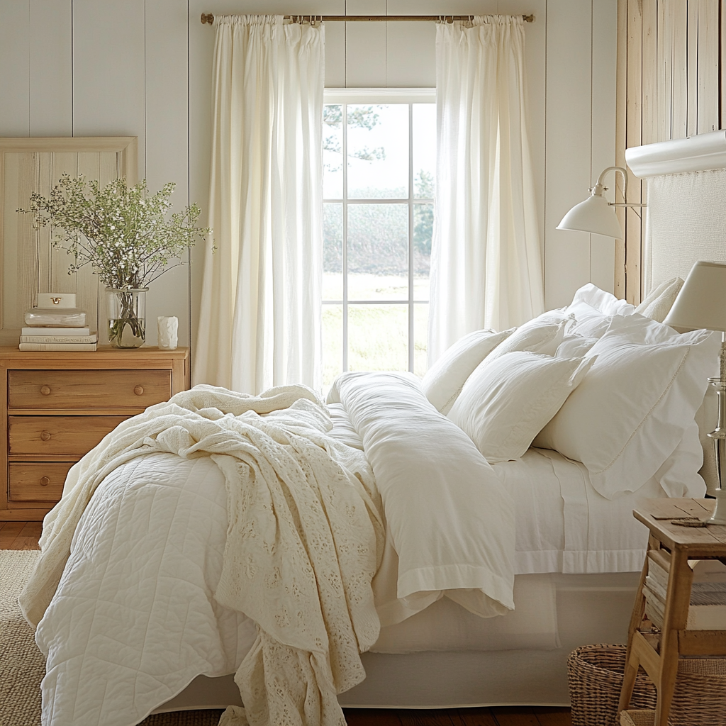 Whites and creams are the go-to colors when you want a bedroom that feels timeless yet sophisticated. These shades not only create a clean, airy atmosphere but also provide the perfect backdrop for any décor style. Whether your vibe is modern minimalist or traditional elegance, soft white tones can complement and elevate the look of your space.