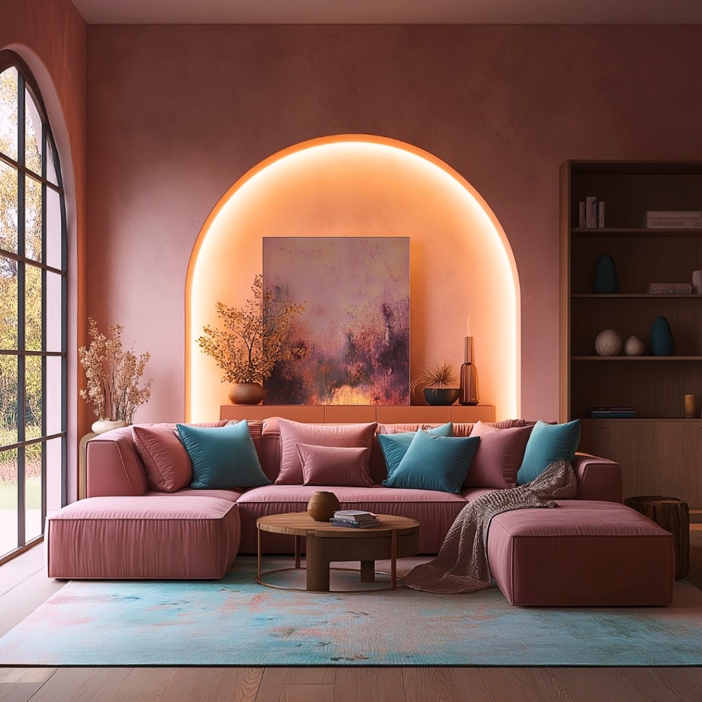 Add a touch of charm to your living room by painting wall arches. Whether it’s a subtle green arch with decor or a bold statement in vibrant hues, painted wall arches give a sophisticated, European vibe. Frame it with plants, use it as a backdrop for portraits, or even as a dedicated nook—it’s all about bringing a story to your space.