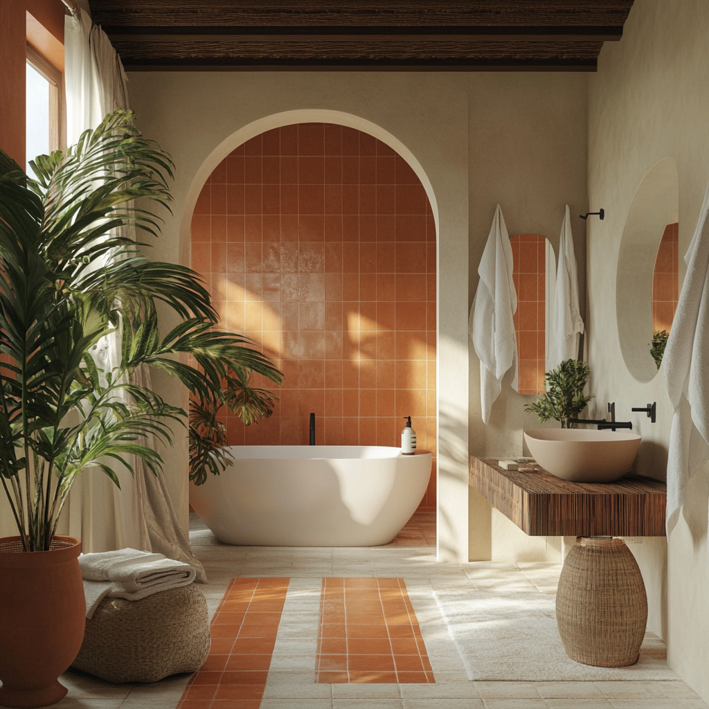 Love the rustic charm of brick walls but don’t want to go through the hassle? Faux brick wall paint is your answer! Perfect for bathrooms and accent walls, this design adds texture and character. Use it as a backdrop for a mirror, in your shower area, or mix and match with muted tones for a stylish touch.