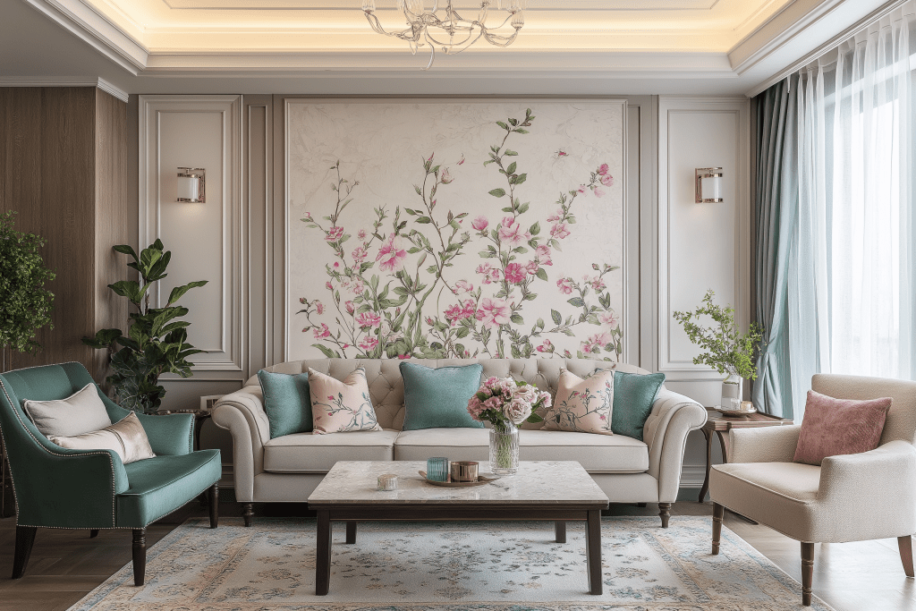 Bring nature indoors with beautiful floral designs. You can choose bold murals that make a statement or delicate floral accents that add a hint of freshness. Florals work great in living rooms, dining areas, and even bedrooms, offering a timeless, vibrant touch.