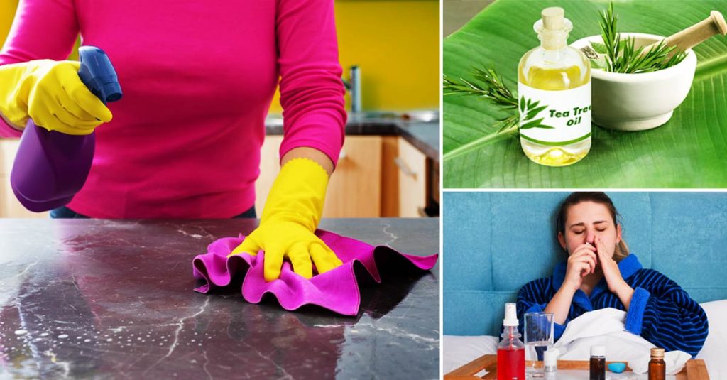 Apart from cleaning your skin, tea tree oil also makes for an excellent cleaning agent (thanks to its antimicrobial properties). Blend 10 drops of tea tree oil to 2 cups of hot water, and 1/2 cup of vinegar to stir up an all-purpose cleaner. However, do not use this cleaner on marble or granite surfaces, as the vinegar can cause damage to the stone.