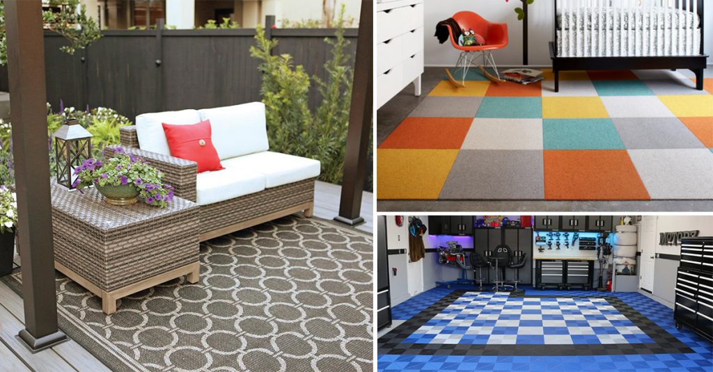 Garage mats are a thick vinyl floor covering solution mostly used in mechanic’s workrooms. But they can transform the look of your kitchen or bathroom, if you so desire. These peel-and-stick mats are available in many vibrant colors and even aid in noise-reduction.