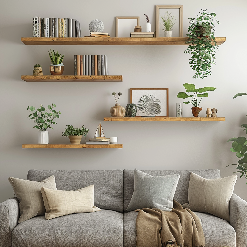 Floating shelves are a game-changer. They save floor space and create an airy feel. Use them as nightstands, bookshelves, or kitchen storage. The open space below these shelves tricks the eye into perceiving a larger room.