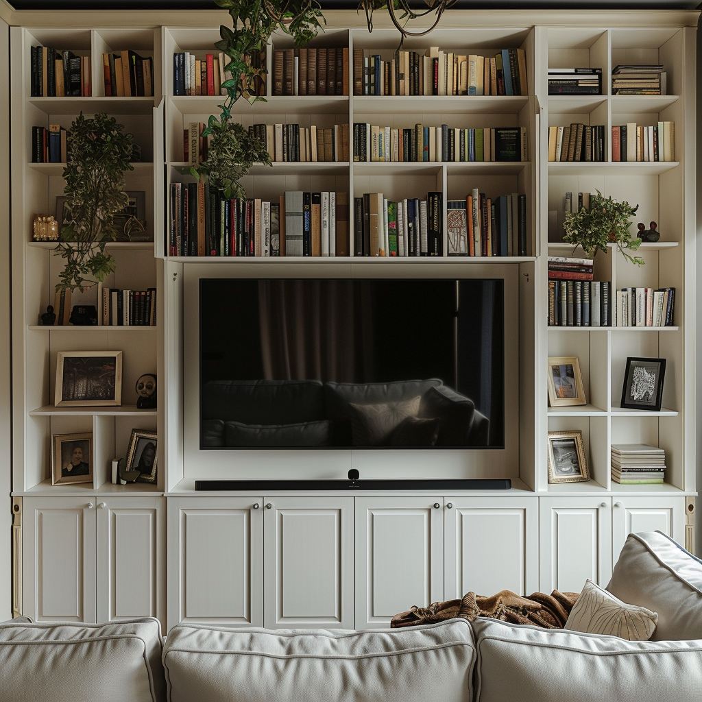Utilize vertical space with floor-to-ceiling shelving. These built-in storage solutions can house everything from books to electronics, making them perfect for small apartments where every inch counts.