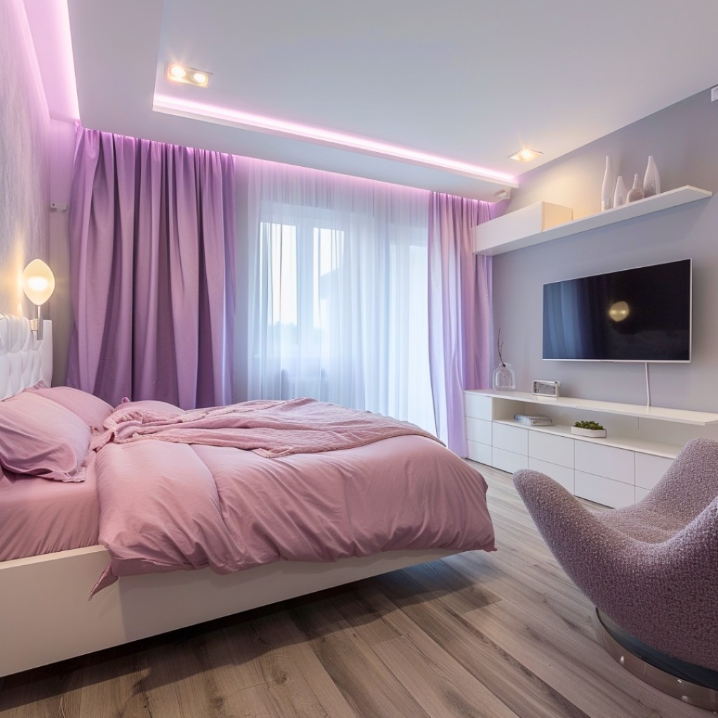 Lighting can make or break the ambiance in a couple’s bedroom. To create a warm and intimate atmosphere, incorporate soft, adjustable lighting. Recessed cove lighting with LED strip lights in the ceiling or behind the headboard is a great way to achieve this effect. Don’t forget to install dimmer switches, so you can easily adjust the brightness to suit your mood, whether you’re winding down for the night or enjoying a quiet evening together.