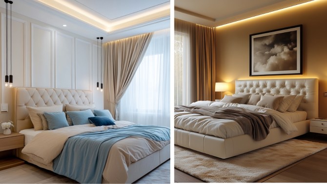 The colors you choose for your bedroom should appeal to both partners and create a sense of harmony. Deep, warm shades like reds, browns, and yellows can add a romantic vibe, while neutral tones like white and beige help keep the space soothing and serene. You can also introduce bolder colors through accents like cushions, rugs, and wall art, striking the perfect balance between comfort and style.