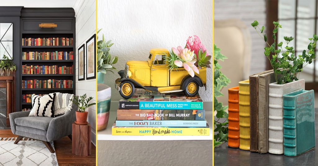 There would hardly be a home without books. We all have stacks of them stored in bookshelves and in under-the-bed boxes. How about indulging in some out-of-the-box decorating and using them to style your home instead?