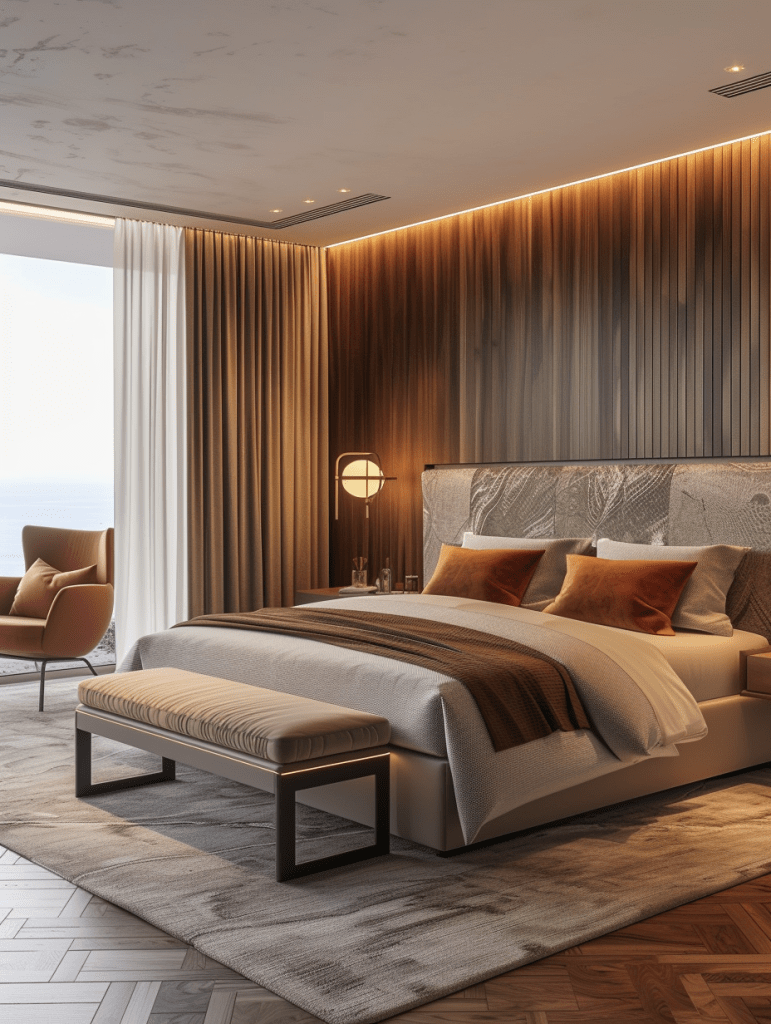 Printed or painted wall panels are a fantastic way to introduce color and pattern into your bedroom without committing to wallpaper. Choose a fabric or wallpaper design that resonates with your aesthetic and have it framed as a large-scale panel to create an instant focal point.