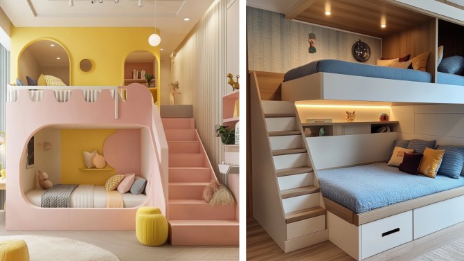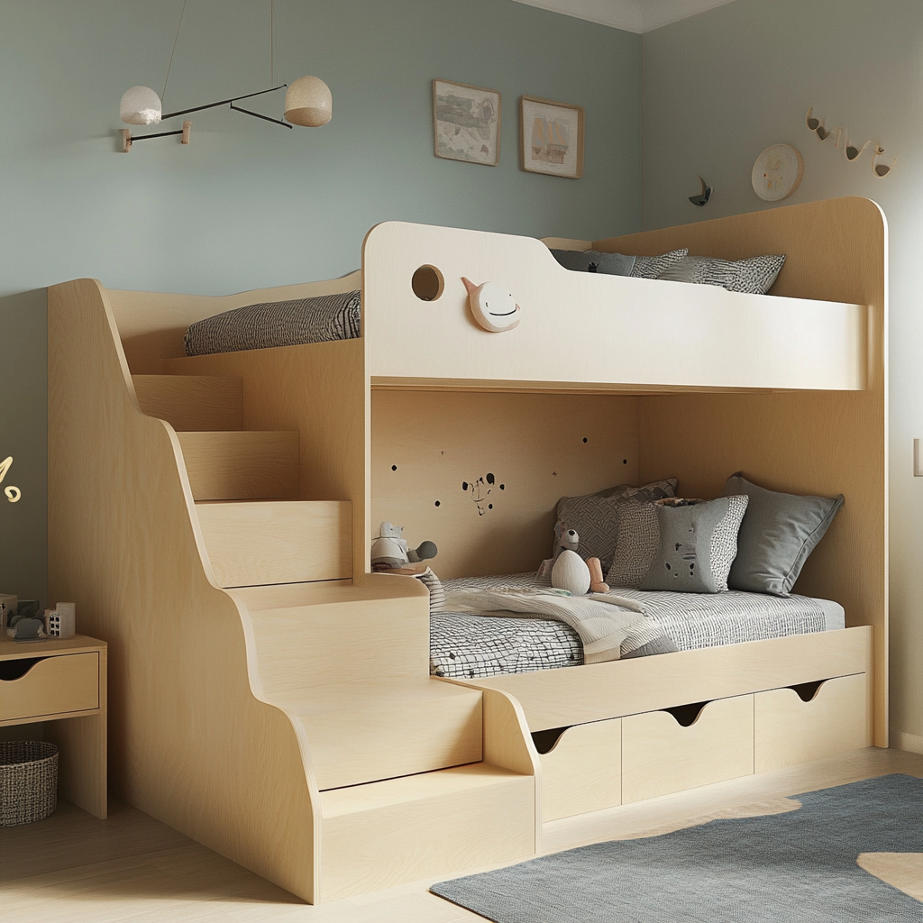 Opt for bunk beds with steps rather than ladders for climbing up and down. Steps are generally safer and easier for children to use, reducing the risk of falls, especially during nighttime trips to the bathroom. Adding a night lamp near the steps can improve visibility and safety.