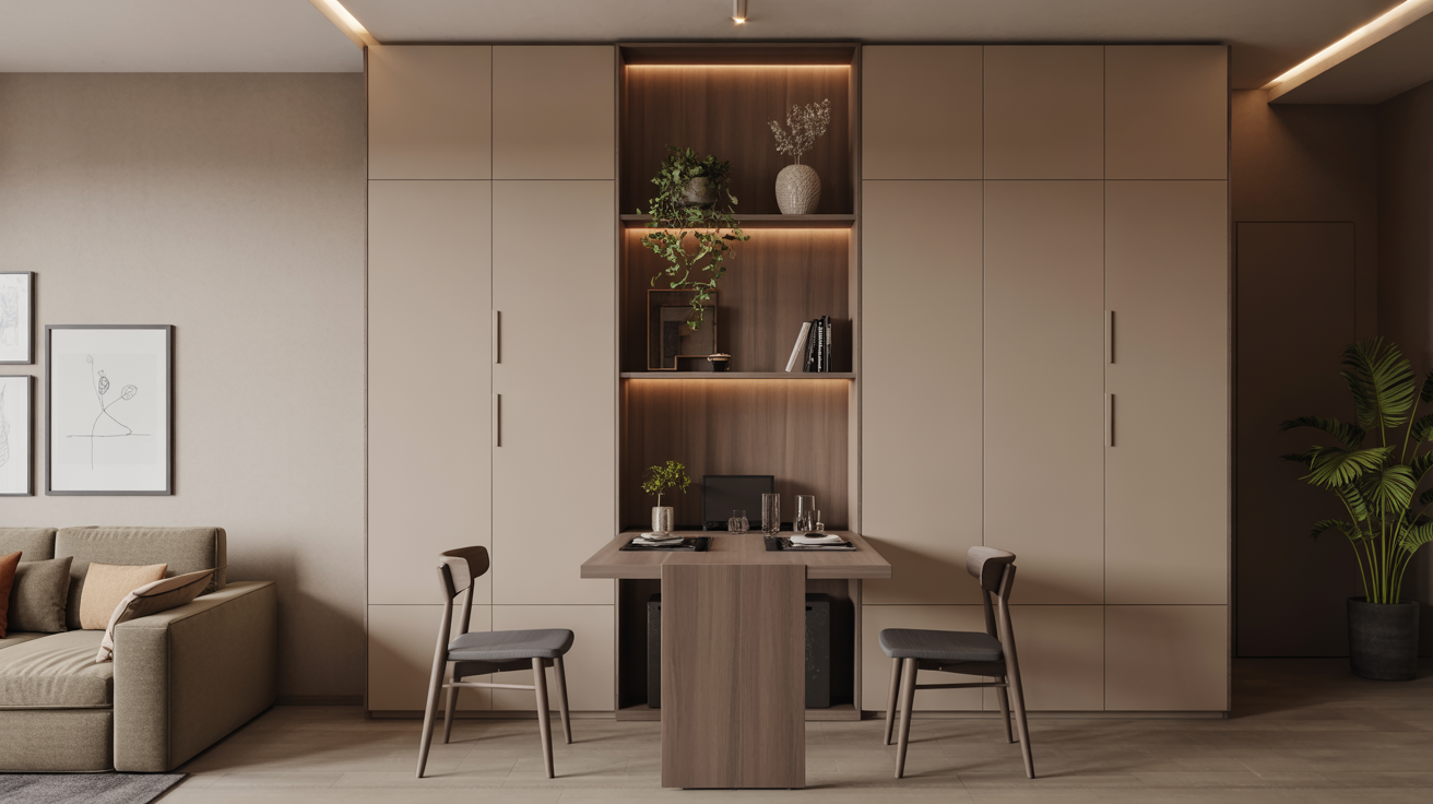Modern space-saving furniture combines innovative design with traditional Indian living needs, proving that compact spaces can be both beautiful and highly functional.