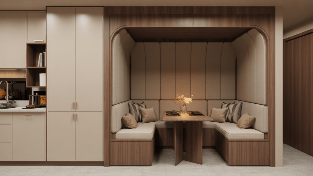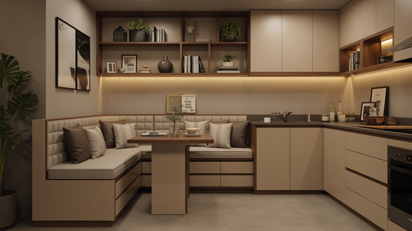 These fixed seating solutions maximize corner spaces that might otherwise go unused. Add cushions and backrests for comfort, and incorporate storage underneath the seating for kitchen essentials, linens, or rarely used appliances.