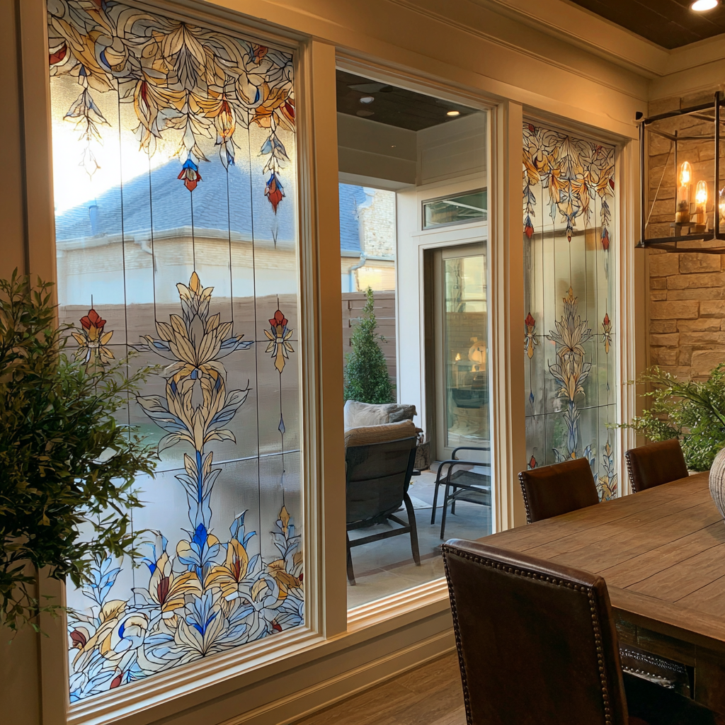 Frosted glass is a classic favorite for bathrooms, stairwells, and bedroom windows. Its hazy surface scatters light beautifully while blurring visibility. It keeps spaces bright but private — perfect for rooms where you want sunlight without the view. You can even choose from etched patterns or subtle gradients for a touch of style.