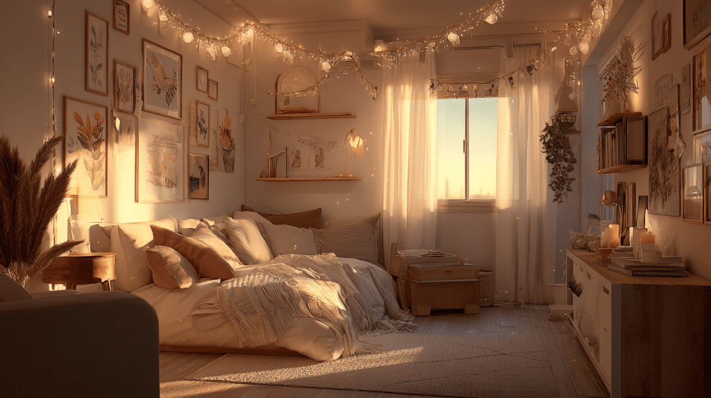 To create the ultimate dreamscape, consider stringing fairy lights across the entire ceiling. This technique gives the illusion of a starry night sky, making the room feel more expansive and magical. For a more subtle effect, focus the lights in one area, like above the bed. The gentle, twinkling lights overhead are a soothing sight to fall asleep to and a beautiful way to personalize your sanctuary.