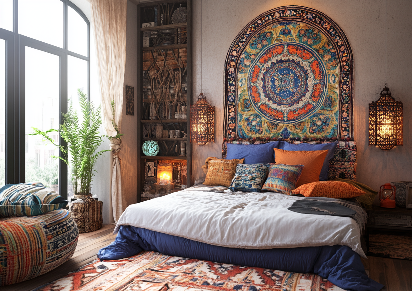 Bohemian interiors boast a rich color scheme, a bend towards ethnic styles, and the use of a wide range of patterns. It forms an ideal design choice if you’re someone who believes that home décor should be individualized and should have a character of its own.
