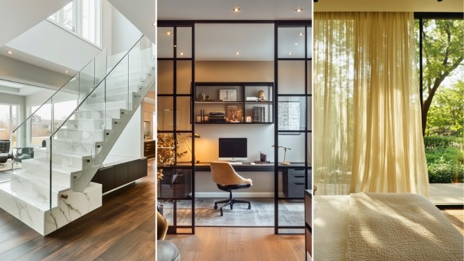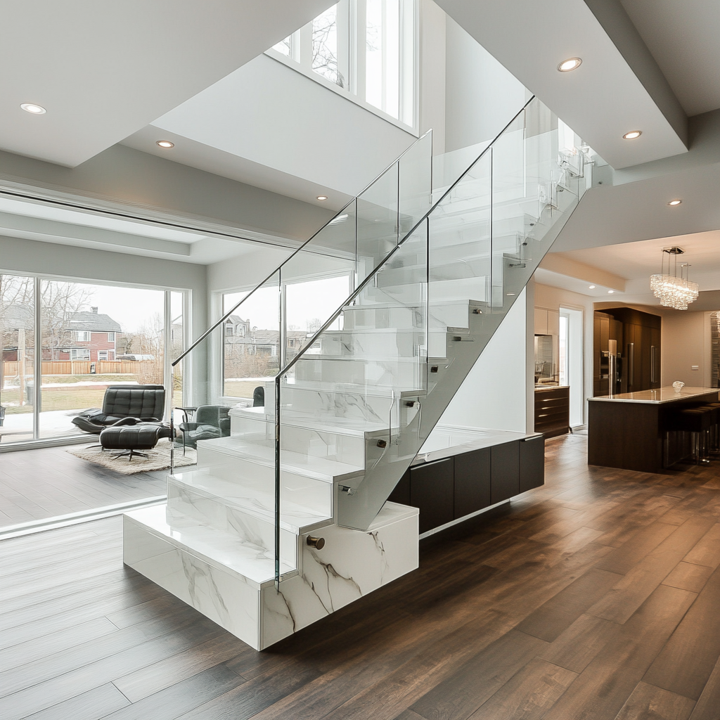 Traditional staircases can take up a lot of visual space, making interiors feel crowded. Glass staircases and railings, on the other hand, create a seamless transition between levels, making homes feel open and fluid.