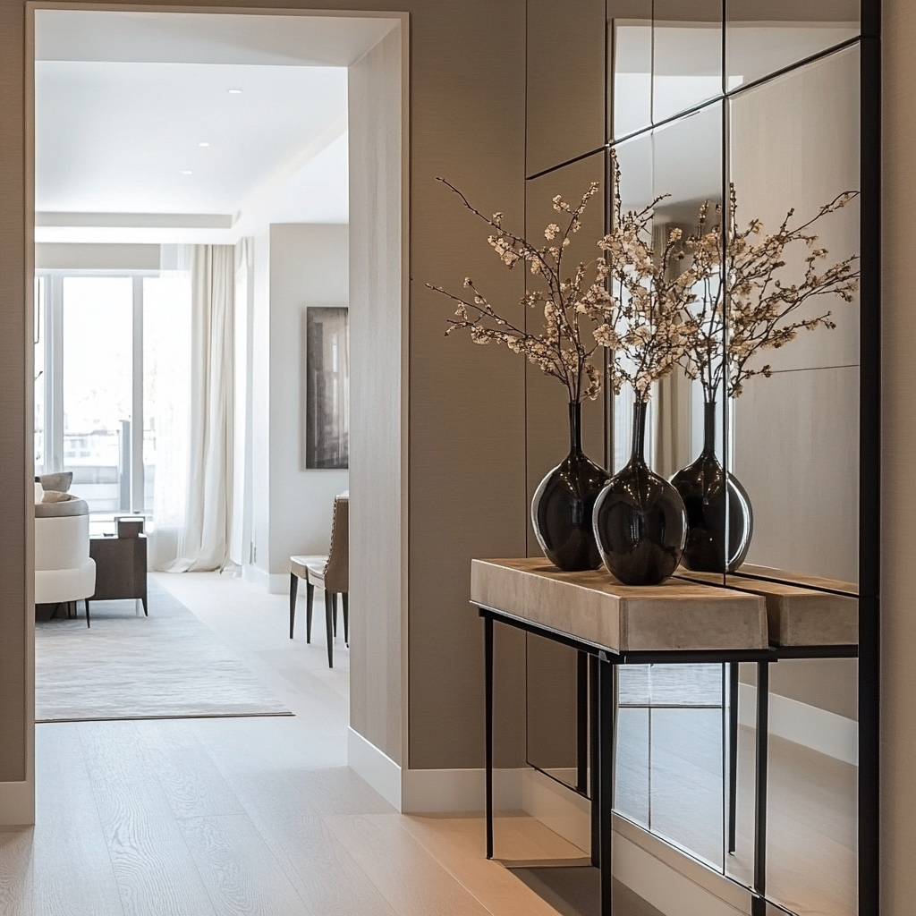 Mirrored closet doors in a bedroom eliminate the need for bulky dressers while adding depth to the space. In hallways, large mirrors create an optical illusion of an extended passage, preventing narrow spaces from feeling cramped. A mirrored backsplash in the kitchen not only looks sleek but also enhances brightness, making cooking areas feel more inviting.