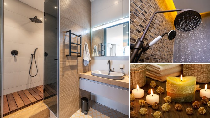 Consider installing a rain shower system if you can do a slightly more extensive project. The sensation of sitting in the rain contributes to the spa atmosphere. A steam shower is also possible if the project’s scope permits it. Or you can simply get a new showerhead. Including several sprays from the shower’s sides or ceiling is also a good idea. Having a portable spray is also helpful if nothing else.