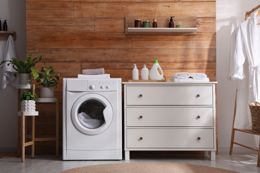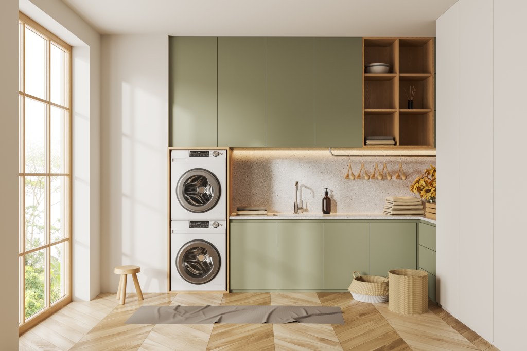 Vinyl flooring stands out as a practical choice. It is durable, waterproof, and affordable, making it a top pick. It’s also available in various styles and colors to match your home’s aesthetic. For high-end looks, luxury vinyl tile provides extra insulation and comfort. For innovative laundry storage ideas, check out 7 Genius Storage Ideas For Your Laundry Room.