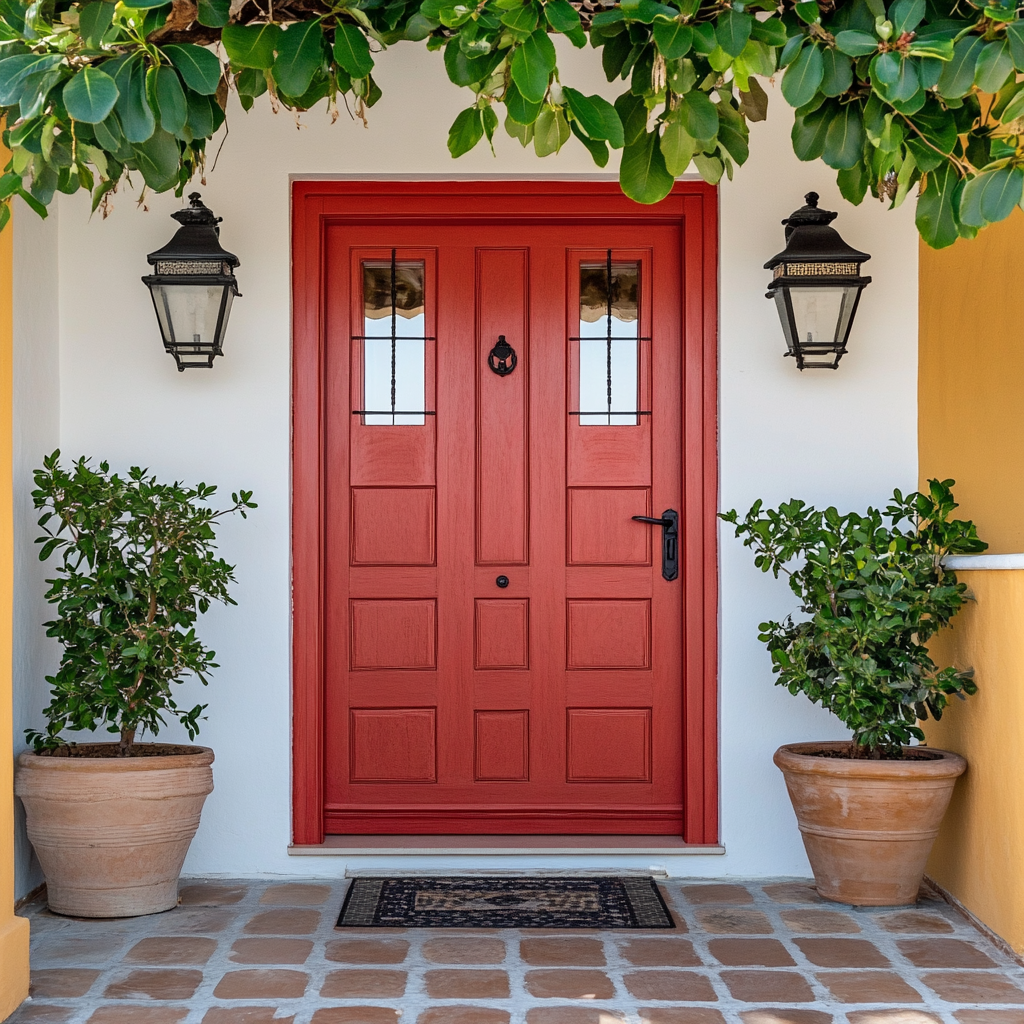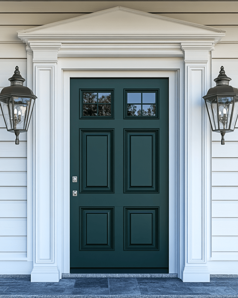 Turn your neighbors green with envy, with this gorgeous color on your front door. This soothing hue will beautifully complement the greenery you choose to have around it. Use quirky hardware in brass for some serious curb appeal.