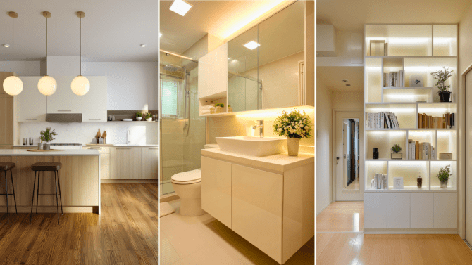 A well-planned bathroom layout can make a huge difference in a compact home. Tuck them into corners to save circulation space, and choose fittings that feel modern without being bulky.