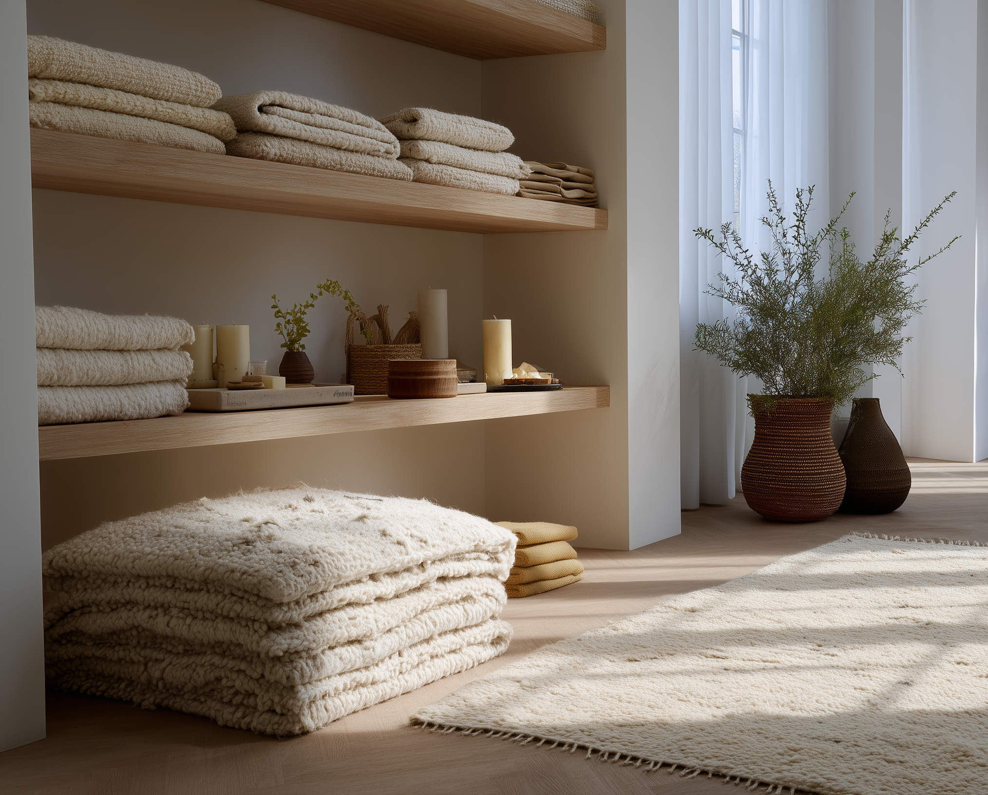Thinking creatively about storage solutions like these helps maintain a clutter-free and beautiful home. Integrating function and style in every detail contributes significantly to the peaceful and positive atmosphere of your dream space.