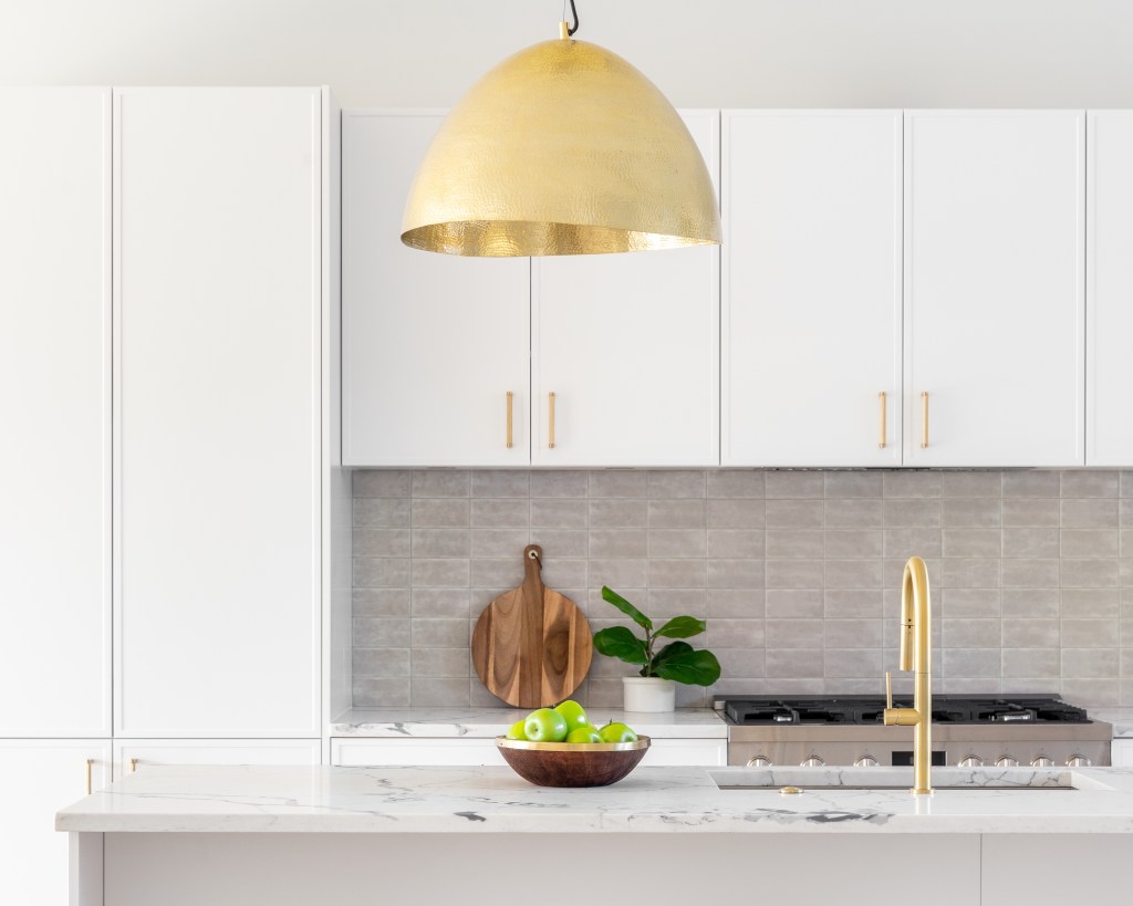 Avoid cluttering the ceiling with too many light fixtures. Choose a focal point for your pendant lights, like over a breakfast bar or dining table, to create a cohesive look.