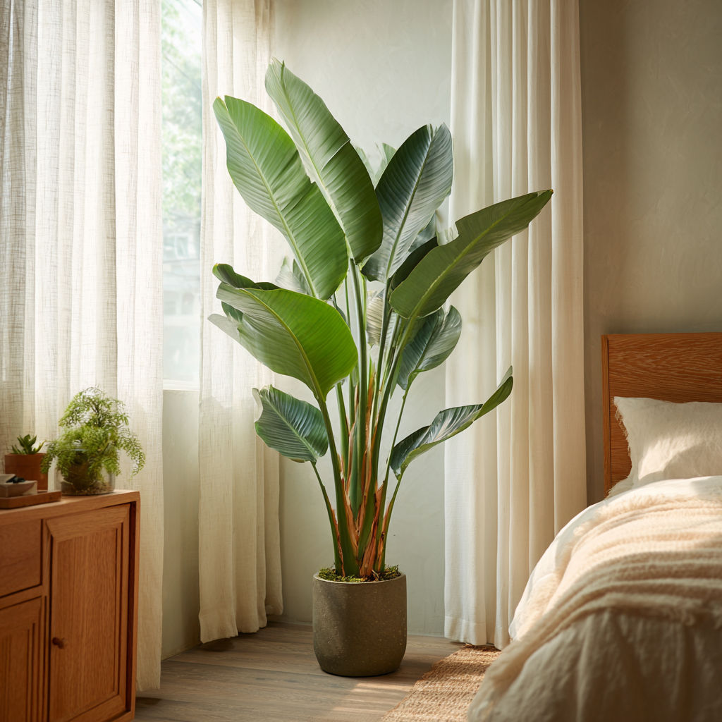 If your minimalist home needs a touch of lush, effortless elegance, the Traveller’s Palm is your plant. Its large, tropical leaves instantly soften clean lines and add resort-style calm to modern spaces.