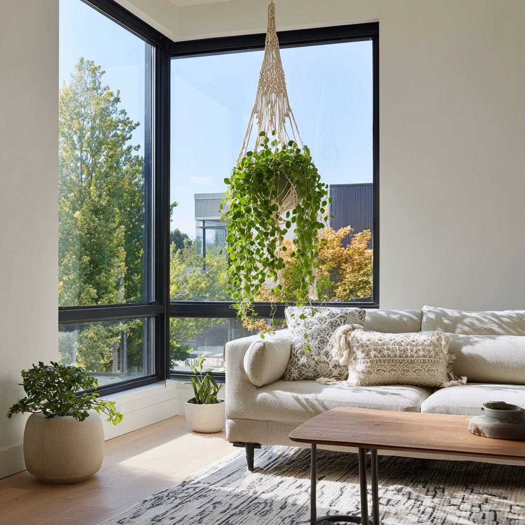 Hanging plants are a brilliant way to add greenery without taking up precious floor or surface space. Use macrame hangers to suspend plants from the ceiling in front of a window, or place a trailing plant on a high shelf. This draws the eye upwards, creating a sense of height and airiness, while the cascading vines add a soft, elegant touch to the room’s decor.