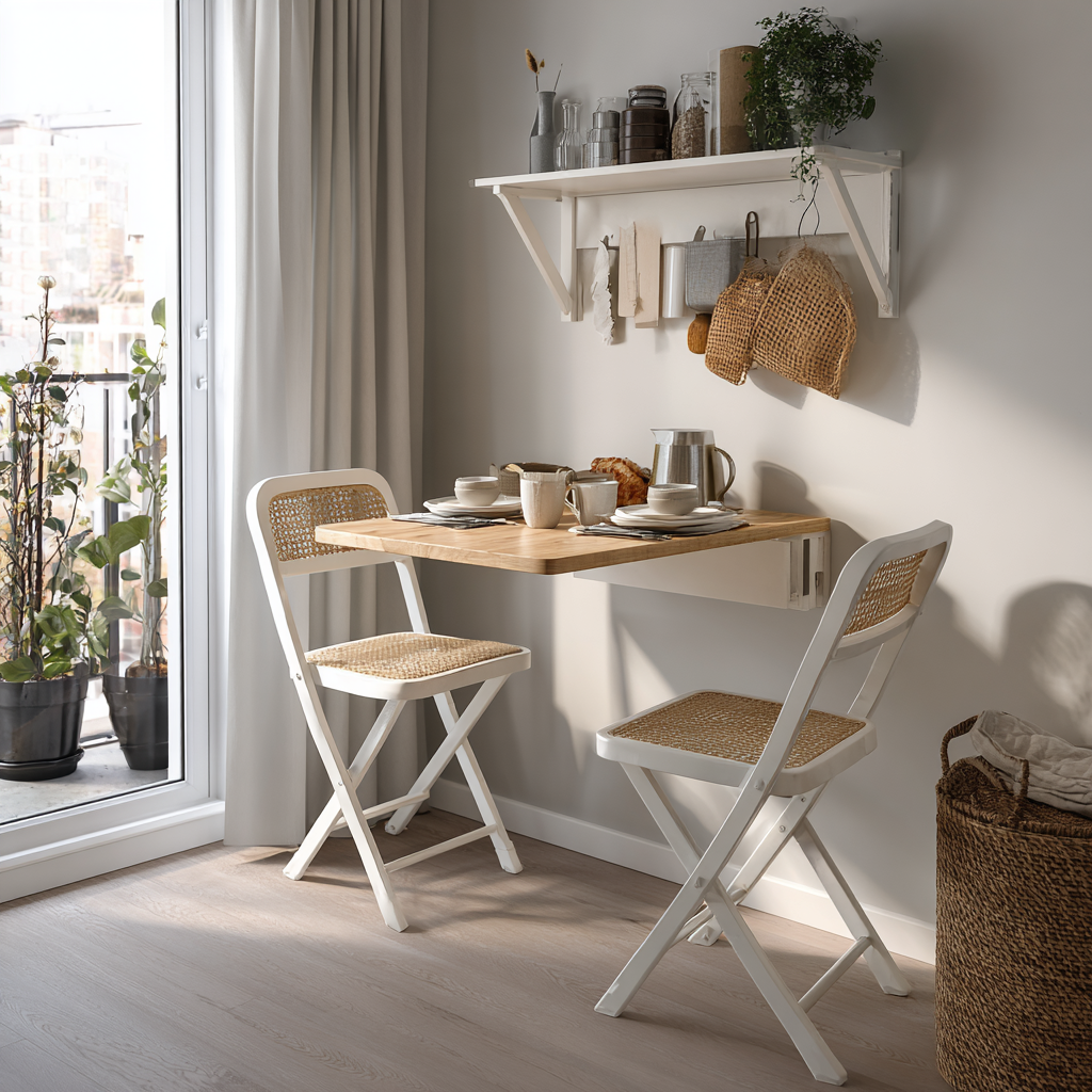 Foldable dining tables are a game changer when space is limited. Use them for meals, work, or hobbies, then fold them away once you’re done. Wall-mounted versions free up floor space entirely. For a touch of charm, pair them with stackable chairs or benches that tuck neatly underneath. It’s dining made flexible — literally!