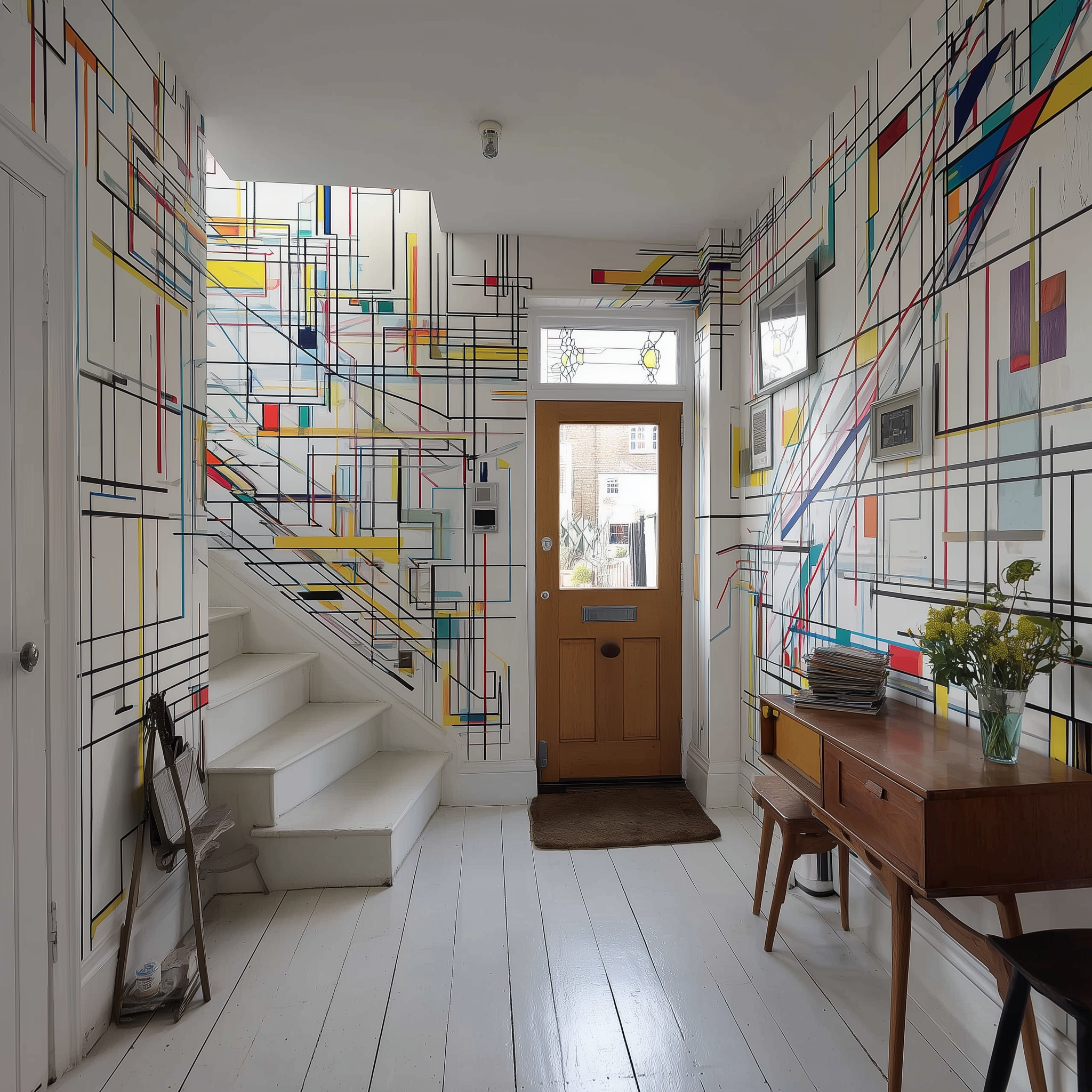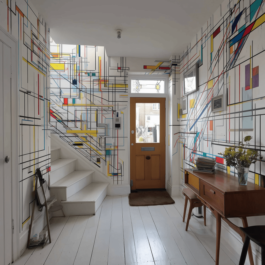 Paint tape helps create sharp borders that instantly make walls feel intentional. Whether you’re doing stripes, arches, blocks, or geometric patterns, the tape keeps lines crisp and controlled.