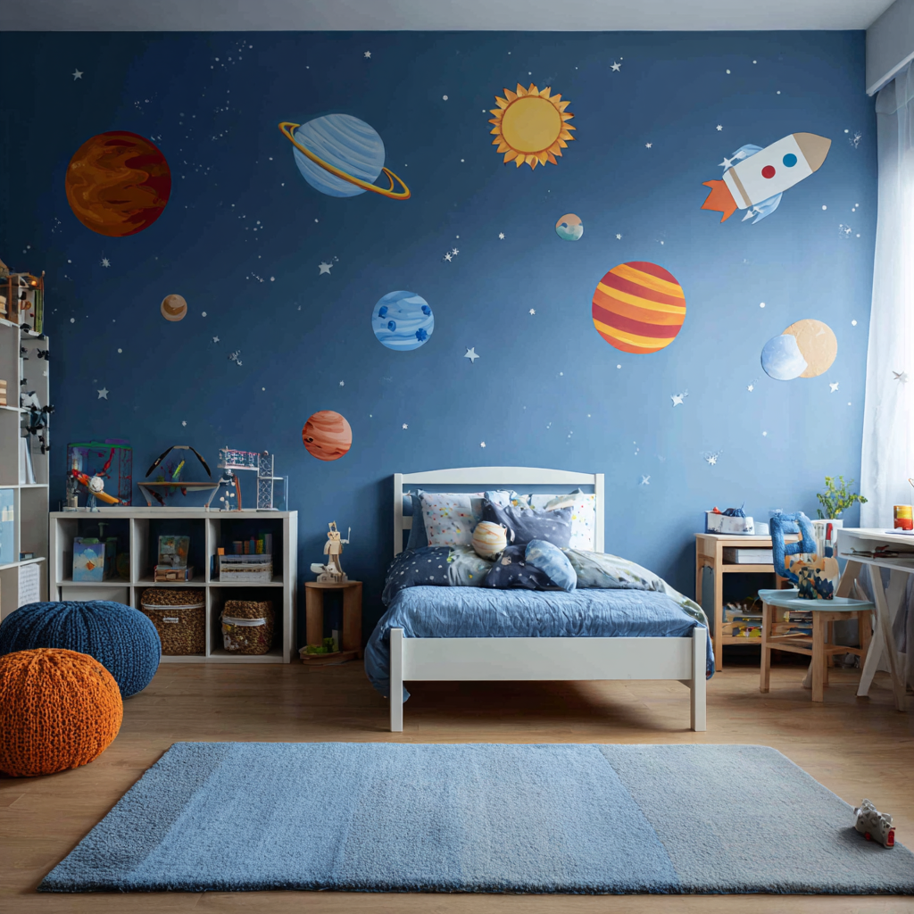 An accent wall is the “hero” of your room — a single wall that features a contrasting color, wallpaper, or texture to create visual interest. It adds depth, defines zones, and instantly livens up a space. You can use it to highlight a focal point like the bed’s headboard, the TV unit, or even a sunny window nook.