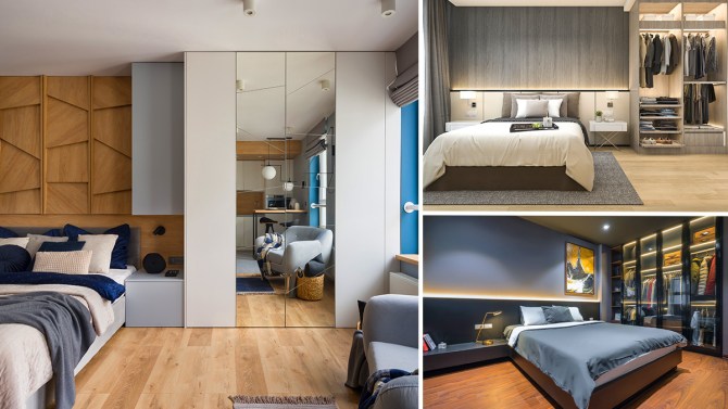 Contrasting your wardrobe and wall colors can bring a dynamic and vibrant feel to your bedroom. Designer Artem Kropovinsky recommends using contrasting colors for larger rooms, such as navy versus pale yellow, to create defined sections within the space. This approach can make your bedroom more energizing and visually appealing.