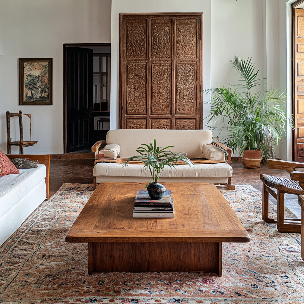 Use traditional materials like bamboo, rattan, or jute alongside contemporary finishes like polished wood or matte metals. These combinations create depth and texture. Wall hangings in traditional fabrics, like Kalamkari or embroidered tapestries, also add a cultural touch.