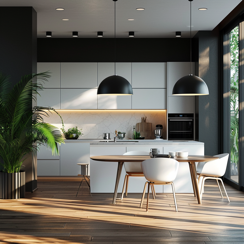 By eliminating barriers, the kitchen basks in the adjoining areas’ light, becoming a brighter, more inviting space. This shared luminosity not only enhances the aesthetic appeal but also promotes energy efficiency. Adjusting the lighting scheme to include elements like chic pendant lights can unify and elevate the design across these merged spaces.