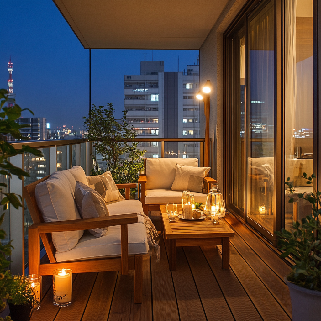 Your outdoor space doesn’t have to stick to neutral tones. Use vibrant cushions, rugs, or painted pots to inject color and personality into the design. A bold chair or a bright canopy can make your balcony pop while maintaining a chic aesthetic.