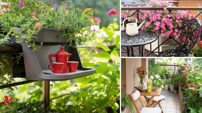 If your balcony has a railing, it may be a good idea to invest in hanging flower boxes to create more space for your plants. You can also think of creating a shelf on one end of the balcony to house all the pots in, to create more space to move about and sit in.
