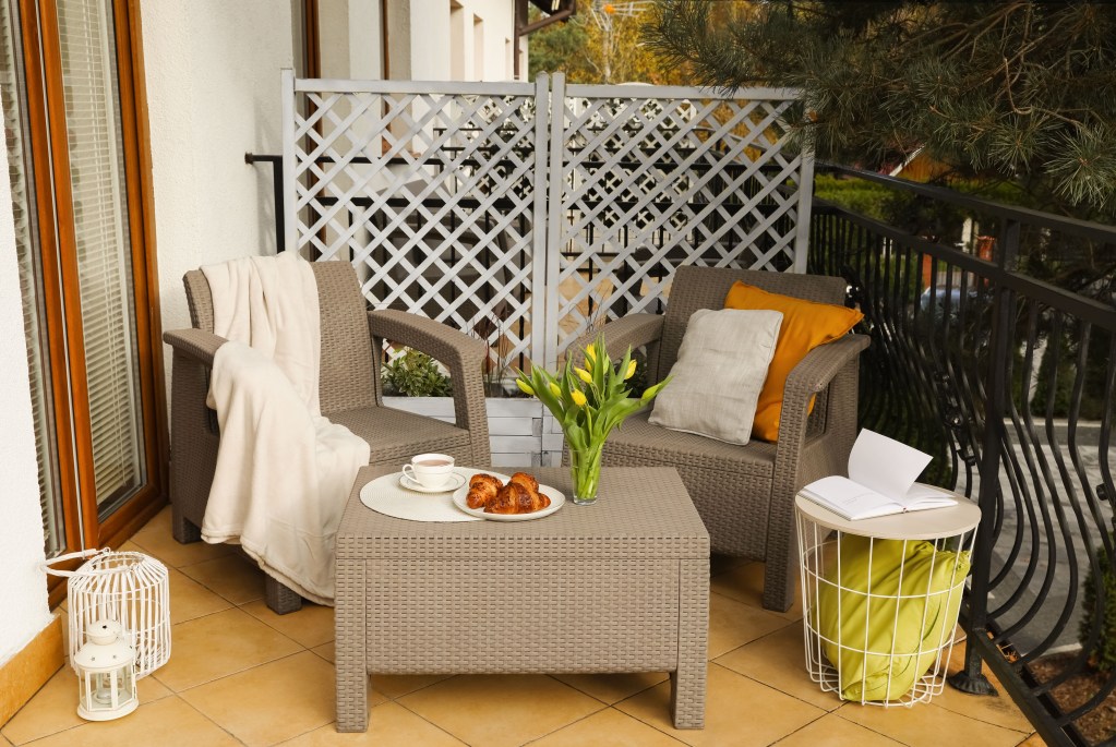 For your outdoor textiles, pick materials that can withstand the elements. Cushions should be water-resistant and easy to clean. Outdoor rugs made of polypropylene are both UV-resistant and waterproof, providing a visual anchor for your seating area. They add warmth and texture to the balcony, making it feel like an extension of your indoor living space.
