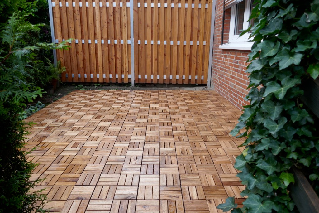 Wooden pavers, available in natural wood and wood-plastic composite (WPC), add warmth and texture to outdoor spaces. They offer a high-end, modern look and can be installed directly over concrete or other flat surfaces. Seasoned wood treated for termite resistance and properly sealed ensures longevity and beauty. Wooden pavers are an excellent choice for those seeking a natural yet contemporary outdoor flooring solution.