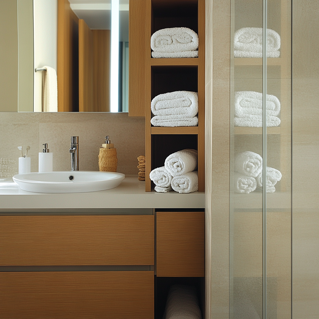 A bathroom can always use additional storage. This isn’t just true for small bathrooms. And bathroom towels can take up quite a lot of space, and if not given their own space, can make a bathroom look cluttered.