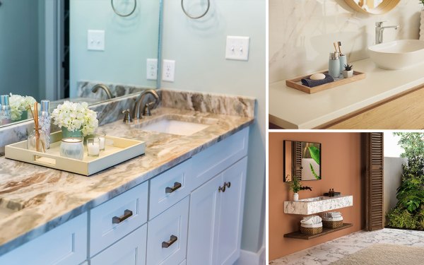 Floating shelves are versatile and can be hung anywhere, from under your sink to over the toilet or near the bathroom mirror. Use these shelves to store bathroom towels and give your bathroom the feel of a luxurious spa.