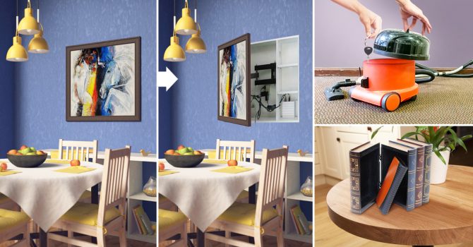 Much like we see in the movies, a wall art concealed storage system is a great way to confuse the burglar. Build a secret wall niche in your house and cover it with wall art.