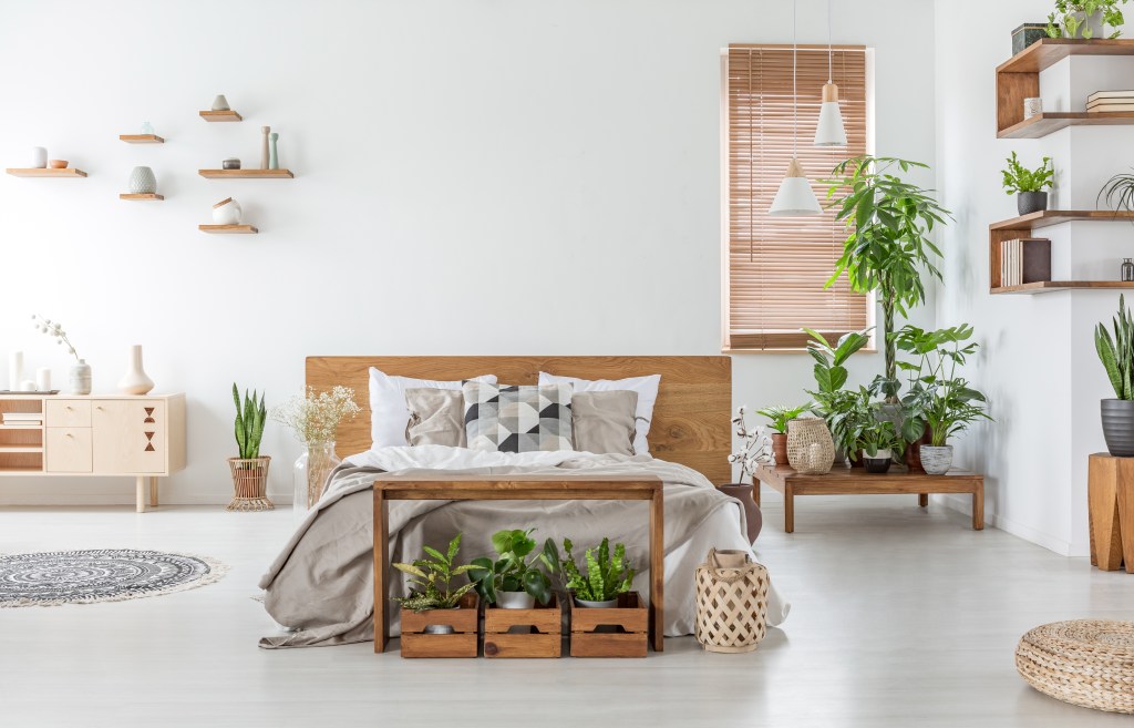 One of the many uses that the foot of your bed can be put to, is by adding plants to your bedroom. How cool is that?!