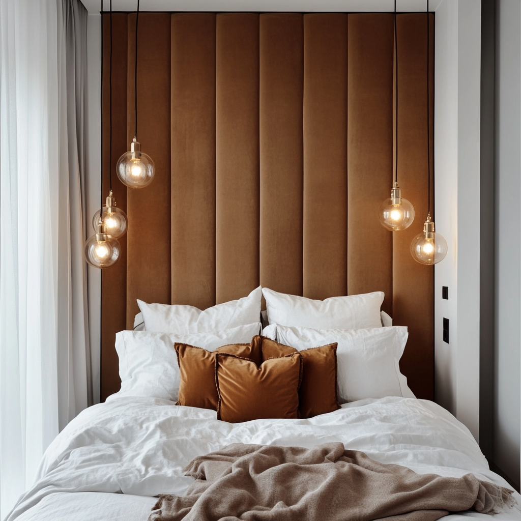 An interesting way to break the monotony of the blank wall behind your bed is to get a statement wall lamp that can add drama to the space without even needing to fill up the space completely. Just make sure you get one that blends with the décor of the room.