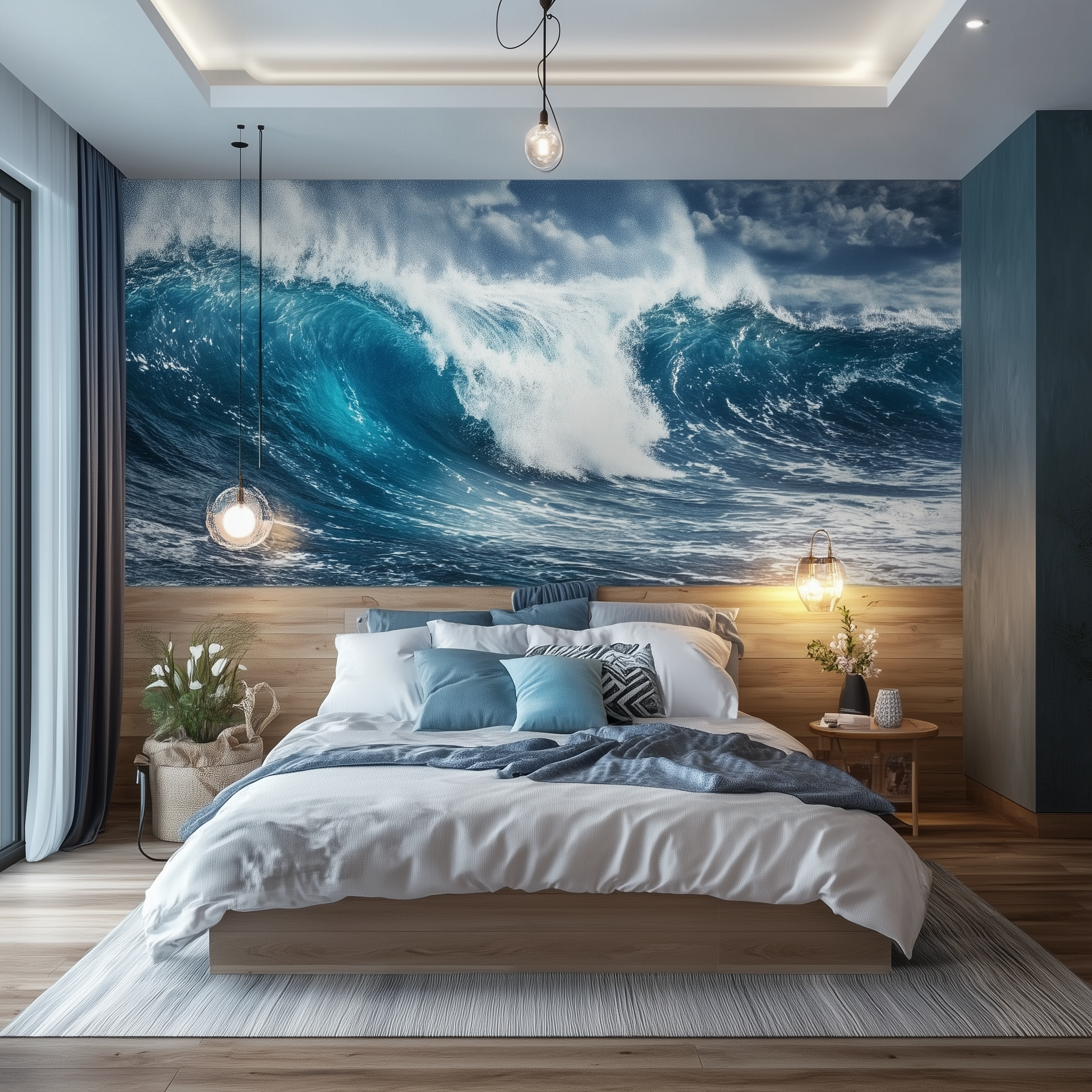 Cover the wall behind your bed with a vibrant wallpaper and watch the space come alive effortlessly!