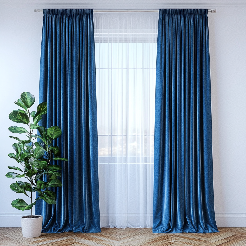 Blue walls evoke a sense of calm and tranquility. When pairing curtains, you can lean into the cool tones or create contrast with warmer hues. Silver and gray curtains enhance the chic, serene vibe, while white curtains keep things fresh and bright. For a touch of drama, consider dark shades like navy or charcoal. Brown curtains can also create a cozy, grounding effect, offering a beautiful contrast.