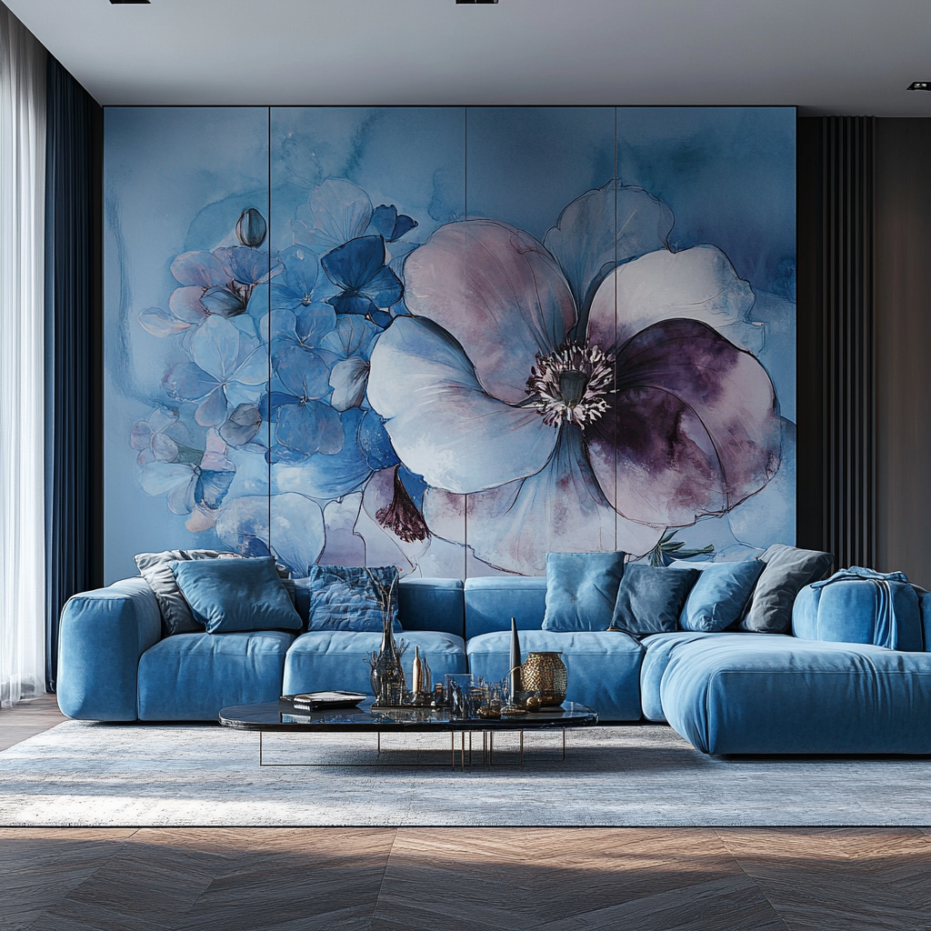 The feature wall in this living space takes center-stage adding to it the right floral touch.