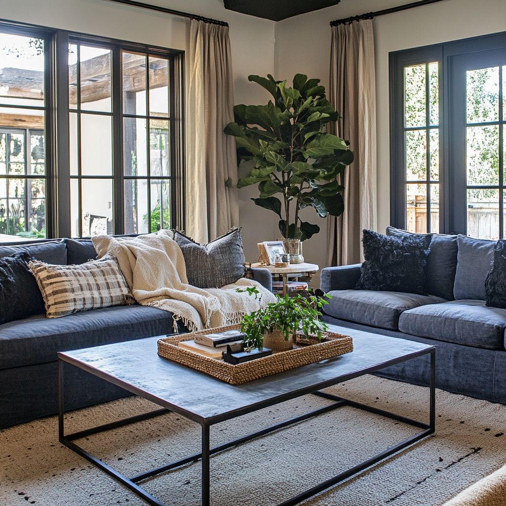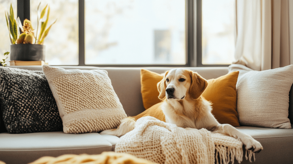 Textiles like velvet, silk, and linen look gorgeous, but they attract pet hair like magnets. Swap them out for pet-friendly fabrics like canvas, denim, or performance fabrics. Performance fabrics are stain-resistant, water-repellent, and super easy to clean — perfect for homes with pets. For curtains, avoid floor-length styles that pets can tug on. Opt for blinds, shades, or short curtains that stay out of paw’s reach.