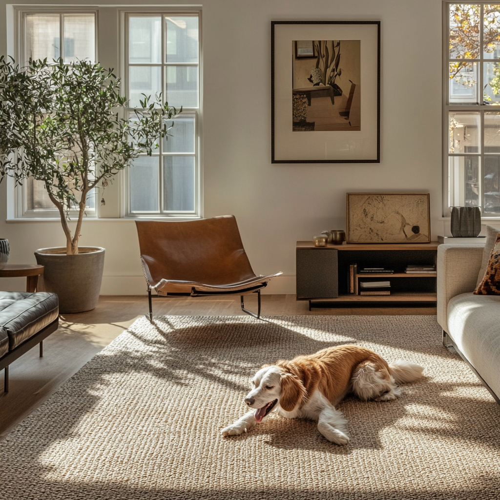 Rugs not only enhance the look of your space but also give your pets a cozy surface to nap on. But with pets around, you need rugs that are washable, stain-resistant, and durable. Avoid fluffy, high-pile rugs and opt for flat-weave or low-pile rugs that don’t trap pet hair. Washable rugs are a lifesaver for homes with pets.